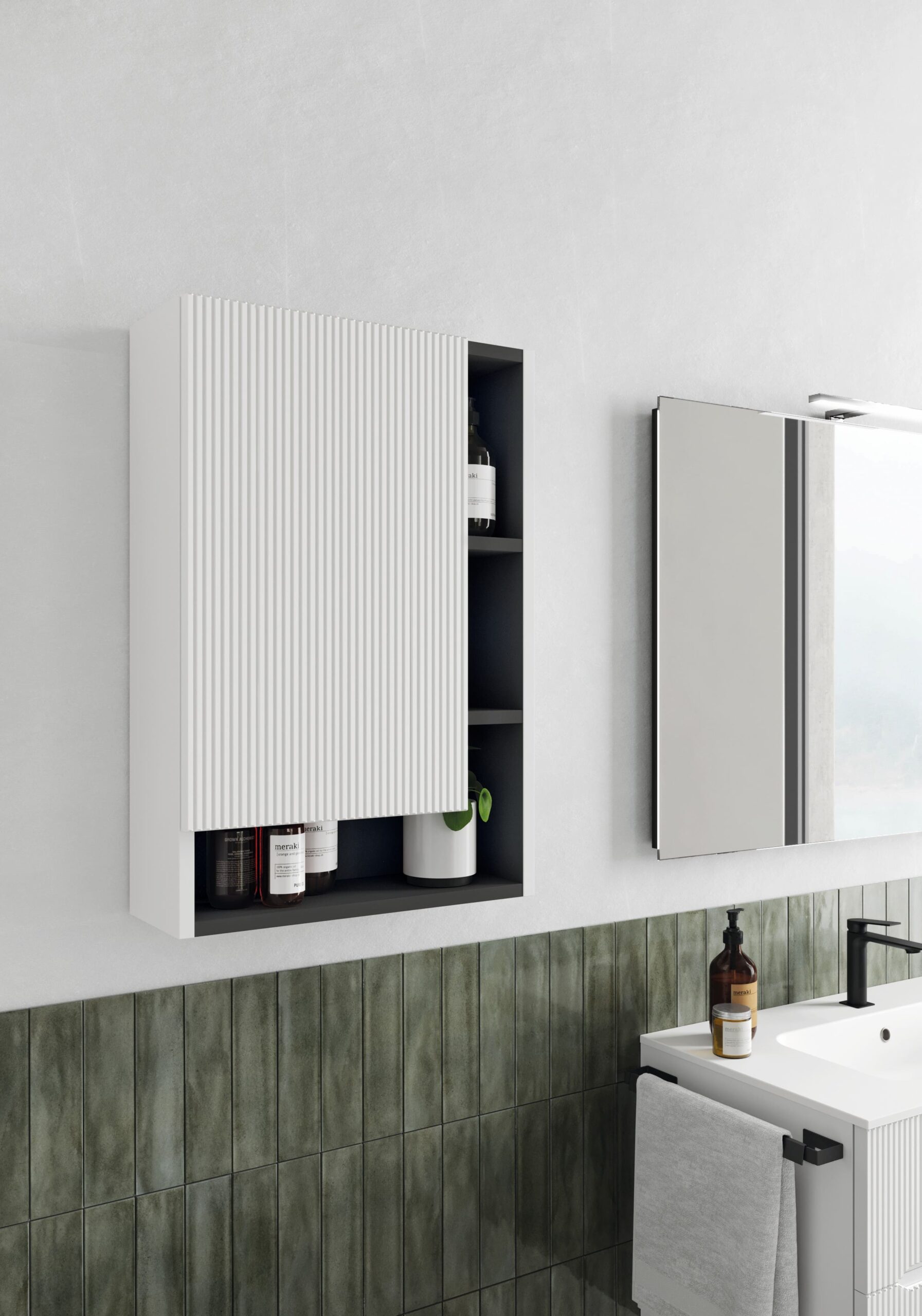 P150SC Pensile a giorno CANNETTATO L.50 H.75 P.20 1 anta SX bianca opaca